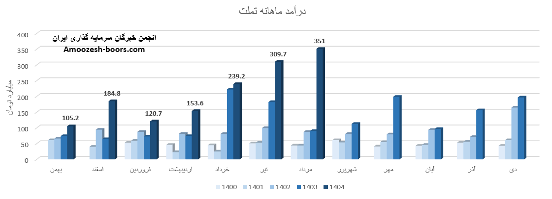 بررسی درآمد شرکت در این بازه زمانی نیز نشان میدهد درآمد اصلی نماد تملت پذیره نویسی بوده که نسبت به ماه گذشته 113% رشد داشته است.