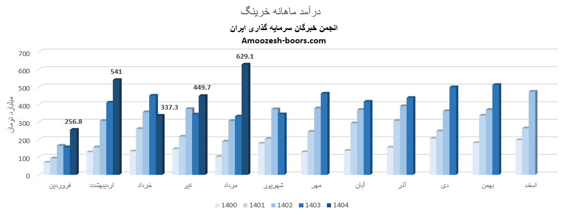 سهام خرینگ از ابتدای سال مالی تا پایان مرداد 1404، مجموع درآمد ثبت شده شرکت به 2214 میلیارد تومان رسیده که نسبت به مدت مشابه سال گذشته 30 درصد رشد داشته، و در همین حال 51 درصد از کل درآمد سال گذشته تحقق یافته است.