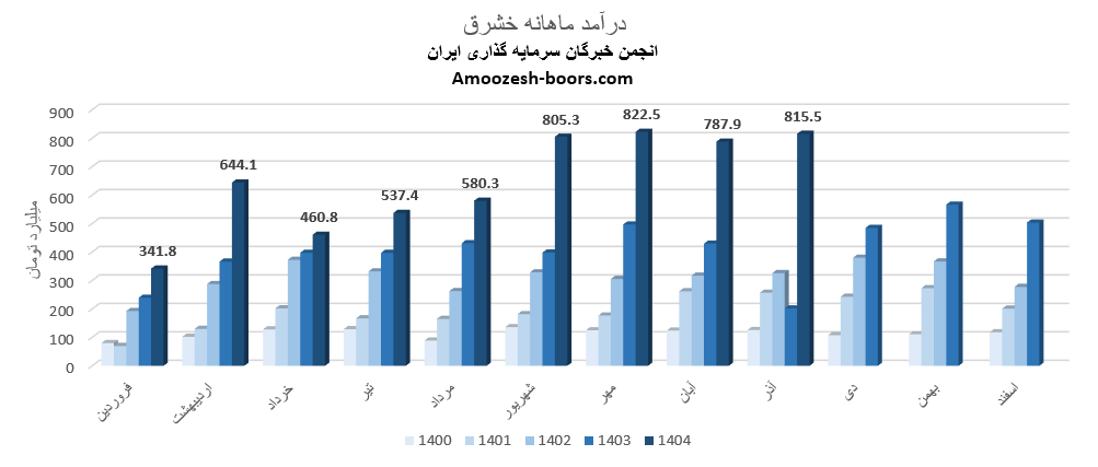 فروش ماهانه در مهرماه 1404 حدود 822.5 میلیارد تومان ثبت شده است.