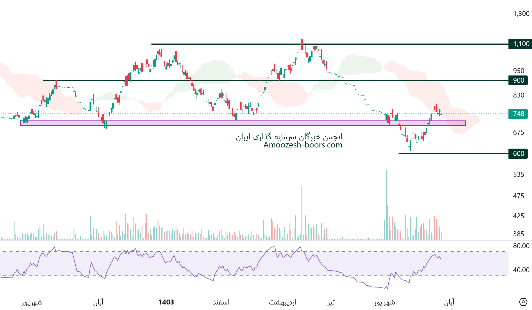 شکست حمایت 70 تومان، می تواند منجر به افت قیمت و ایجاد سیگنال فروش شود.