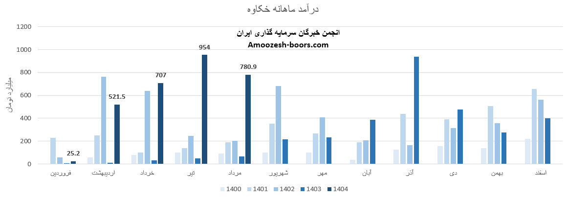 سهام خکاوه از ابتدای سال مالی تا پایان مرداد 1404، مجموع درآمد ثبت شده شرکت به 2989 میلیارد تومان رسیده که نسبت به مدت مشابه سال گذشته 1648 درصد رشد داشته، و در همین حال 96 درصد از کل درآمد سال گذشته تحقق یافته است.