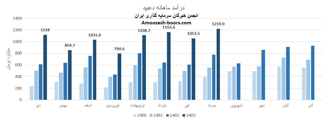 بر اساس صورت مالی و عملکرد ماهانه سهام دعبید که در کدال منتشر شده، این شرکت در این ماه توانسته به درآمد 1219.9 میلیارد تومان دست یابد، این عدد در مقایسه با ماه گذشته تغییر 16%+، در مقایسه با متوسط ماهانه 20%+ و در مقایسه با مدت مشابه 58%+ داشته است.