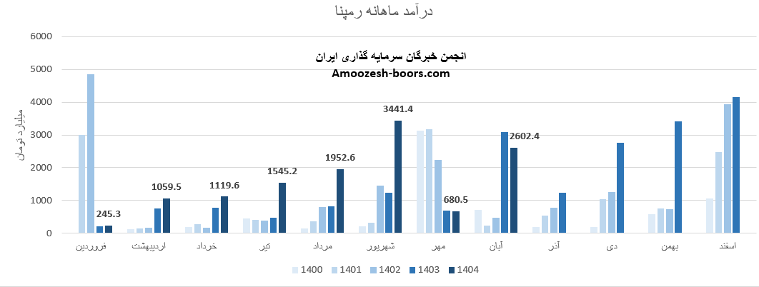 طبق گزارش های منتشرشده در کدال، مجموع درآمد عملیاتی رمپنا تا پایان آبان 1404 به 12647 میلیارد تومان رسیده است.