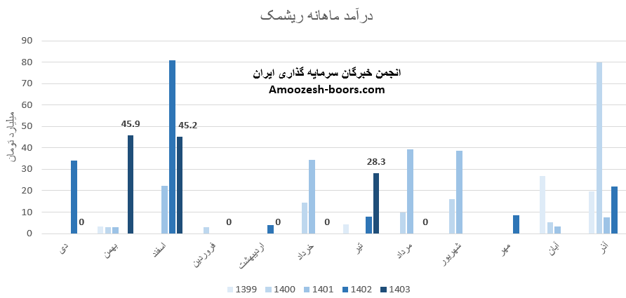 بر اساس صورت مالی و عملکرد ماهانه سهام ریشمک که در کدال منتشر شده، این شرکت در این ماه توانسته به درآمد 0 میلیارد تومان دست یابد.