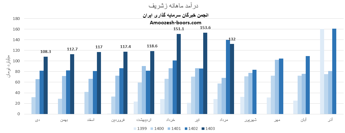 بر اساس صورت مالی و عملکرد ماهانه سهام زشریف که در کدال منتشر شده، این شرکت در این ماه توانسته به درآمد 132 میلیارد تومان دست یابد، این عدد در مقایسه با ماه گذشته تغییر 14%-، در مقایسه با متوسط ماهانه 5%+ و در مقایسه با مدت مشابه 6%- داشته است.