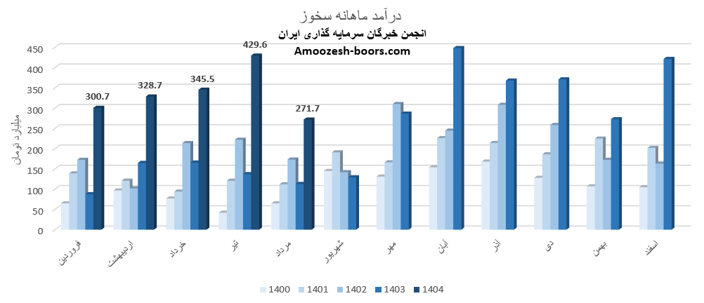سهام سخوز از ابتدای سال مالی تا پایان مرداد 1404، مجموع درآمد ثبت شده شرکت به 1676 میلیارد تومان رسیده که نسبت به مدت مشابه سال گذشته 151 درصد رشد داشته، و در همین حال 57 درصد از کل درآمد سال گذشته تحقق یافته است.