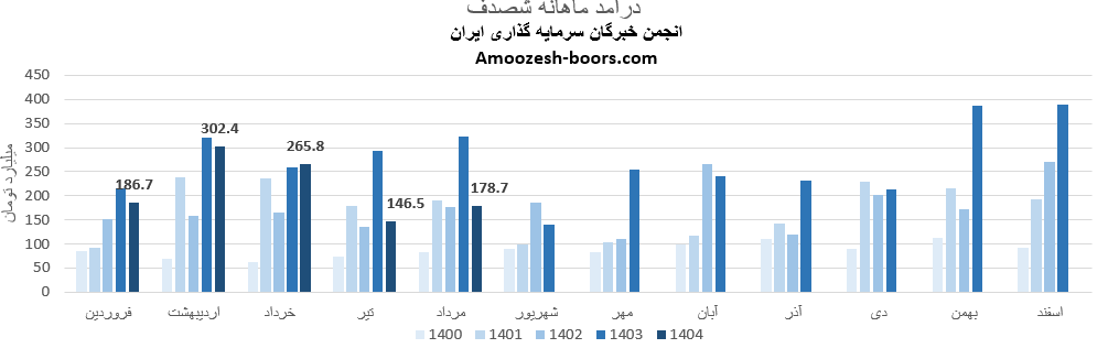 سهام شصدف از ابتدای سال مالی تا پایان مرداد 1404، مجموع درآمد ثبت شده شرکت به 1080 میلیارد تومان رسیده که نسبت به مدت مشابه سال گذشته 23 درصد افت داشته، و در همین حال 33 درصد از کل درآمد سال گذشته تحقق یافته است.