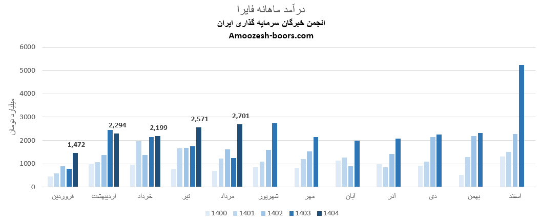 سهام فایرا از ابتدای سال مالی تا پایان مرداد 1404، مجموع درآمد ثبت شده شرکت به 11237 میلیارد تومان رسیده که نسبت به مدت مشابه سال گذشته 34 درصد رشد داشته، و در همین حال 41 درصد از کل درآمد سال گذشته تحقق یافته است.