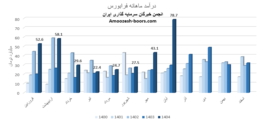 سهام فرابورس از ابتدای سال مالی تا پایان مرداد 1404، مجموع درآمد ثبت شده شرکت به 187 میلیارد تومان رسیده که نسبت به مدت مشابه سال گذشته 84 درصد رشد داشته، و در همین حال 57 درصد از کل درآمد سال گذشته تحقق یافته است.