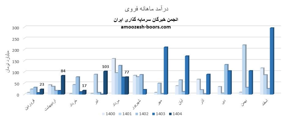سهام فروی از ابتدای سال مالی تا پایان مرداد 1404، مجموع درآمد ثبت شده شرکت به 303 میلیارد تومان رسیده که نسبت به مدت مشابه سال گذشته 175 درصد رشد داشته، و در همین حال 27 درصد از کل درآمد سال گذشته تحقق یافته است.