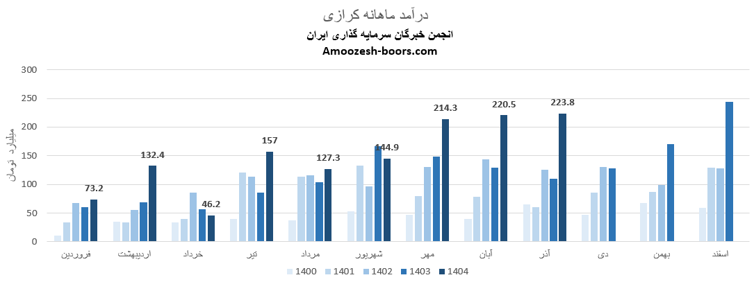 طبق گزارش های منتشرشده در کدال، مجموع درآمد عملیاتی کرازی تا پایان مهر 1404 به 895 میلیارد تومان رسیده است.