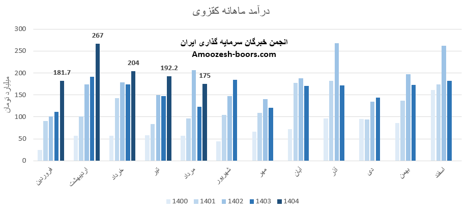 گزارش فعالیت ماهانه نماد کقزوی در فروردین ماه سال 1404 نشان میدهد که این شرکت در این بازه زمانی توانسته است به درآمد 182 میلیارد تومان دست یابد، این رقم نسبت به ماه مشابه سال گذشته 62 درصد افزایش داشته است.