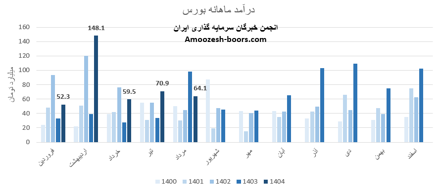 سهام بورس از ابتدای سال مالی تا پایان مرداد 1404، مجموع درآمد ثبت شده شرکت به 395 میلیارد تومان رسیده که نسبت به مدت مشابه سال گذشته 71 درصد رشد داشته، و در همین حال 51 درصد از کل درآمد سال گذشته تحقق یافته است.