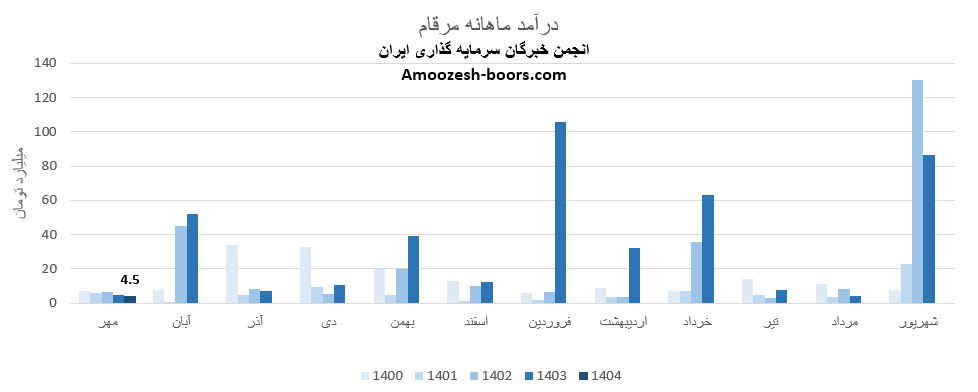 فروش ماهانه در مهرماه 1404 حدود 4.5 میلیارد تومان ثبت شده است.